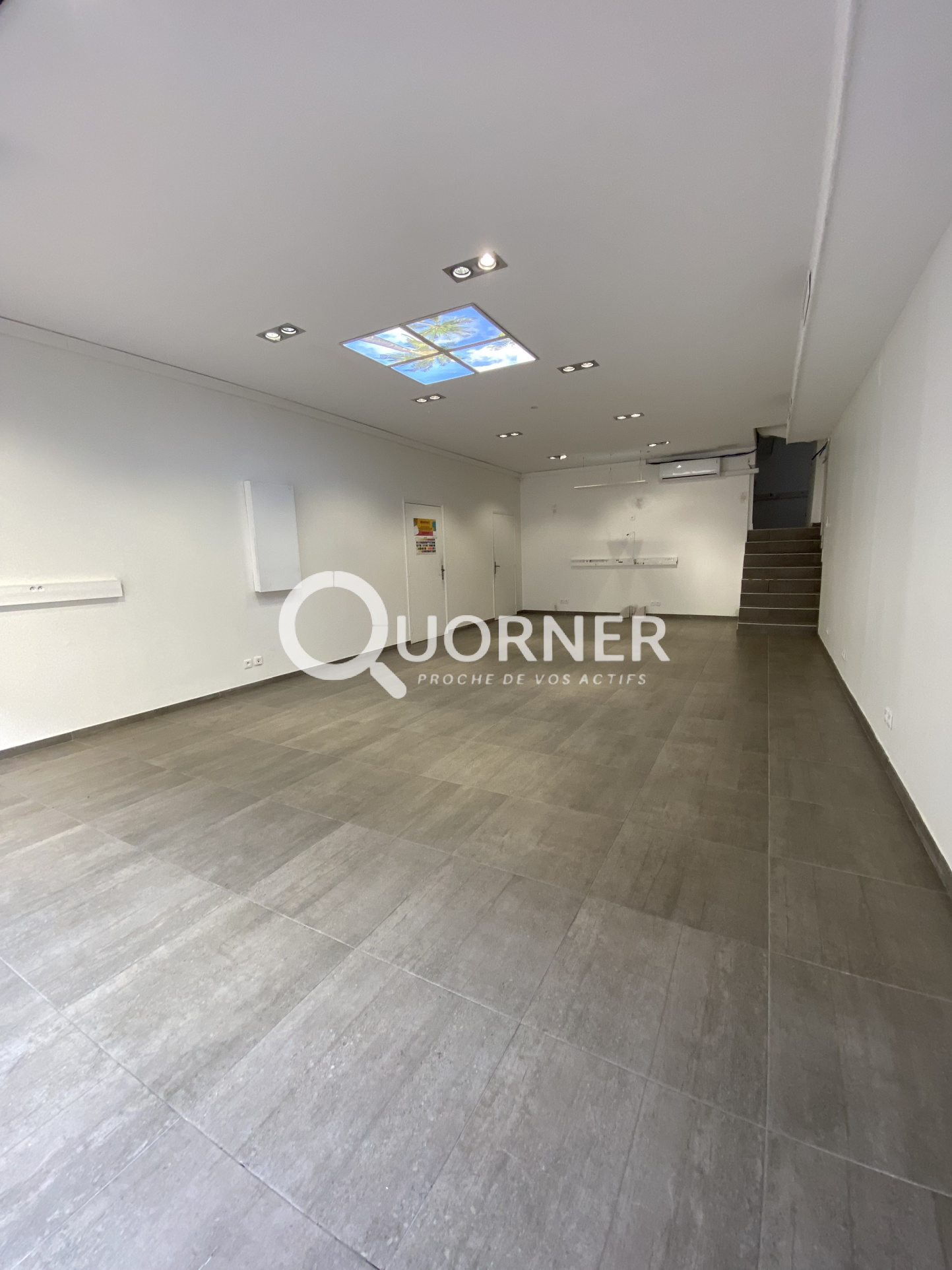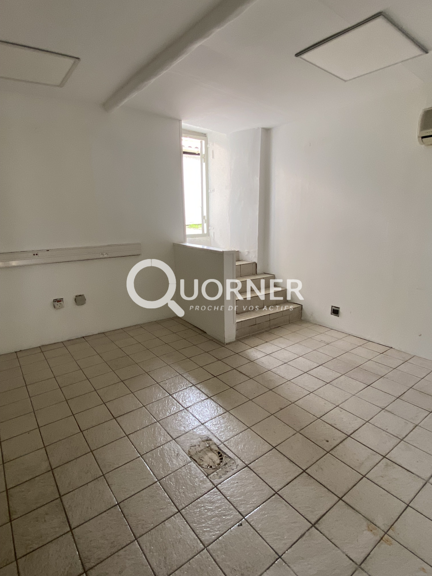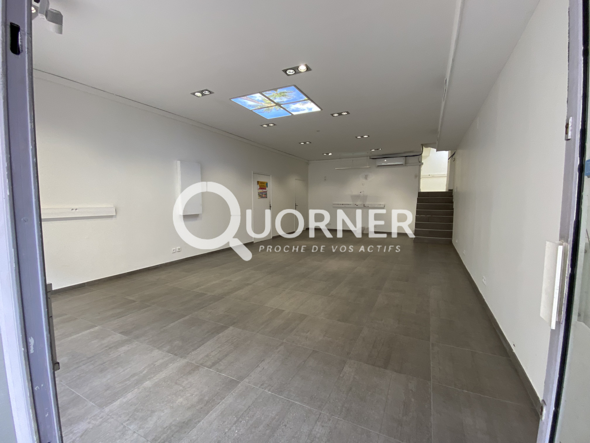 Vitrine - Climatisation - Sanitaire - A demi niveau: 2 pieces; bureau / stockage / reserve ...