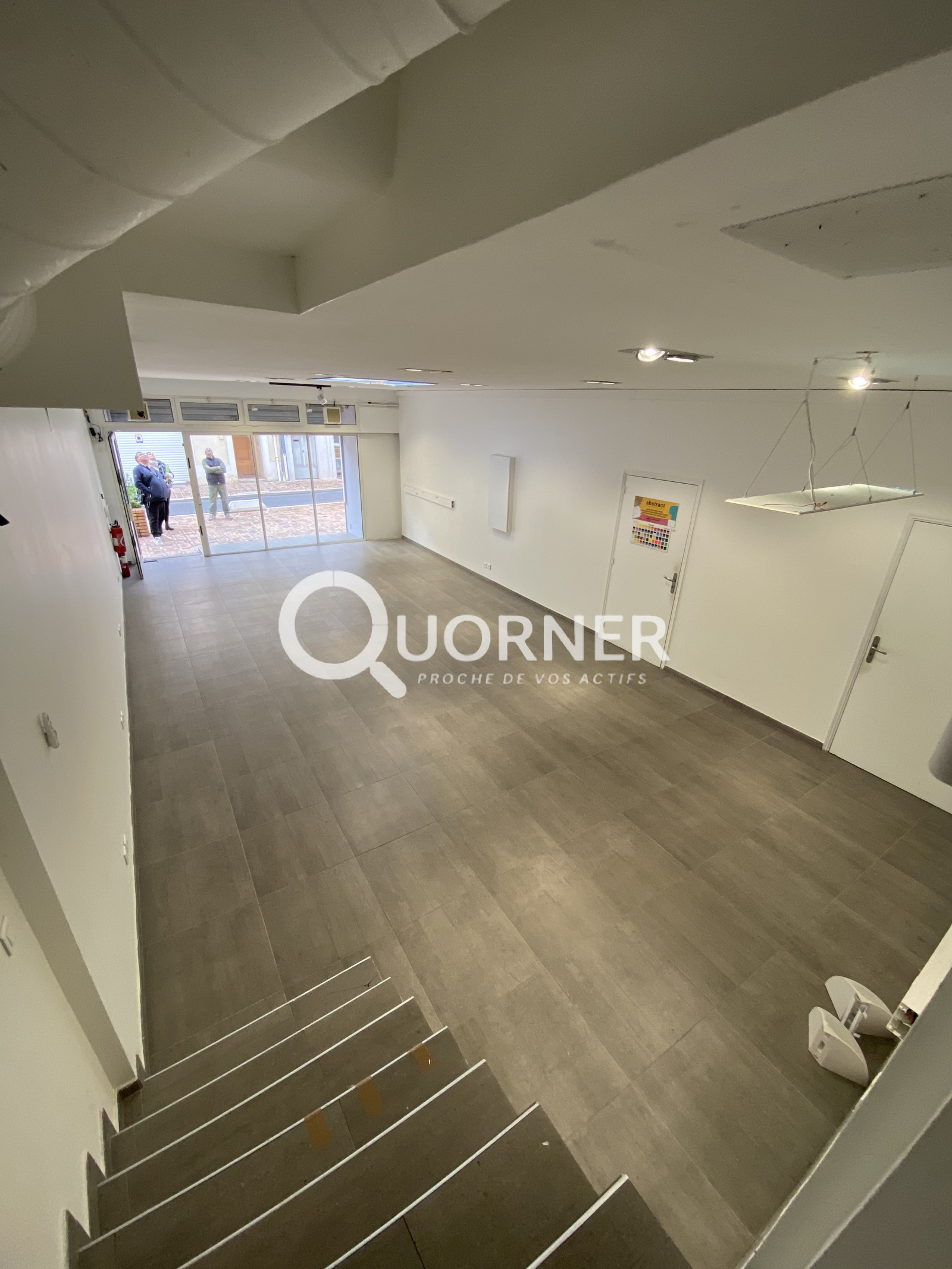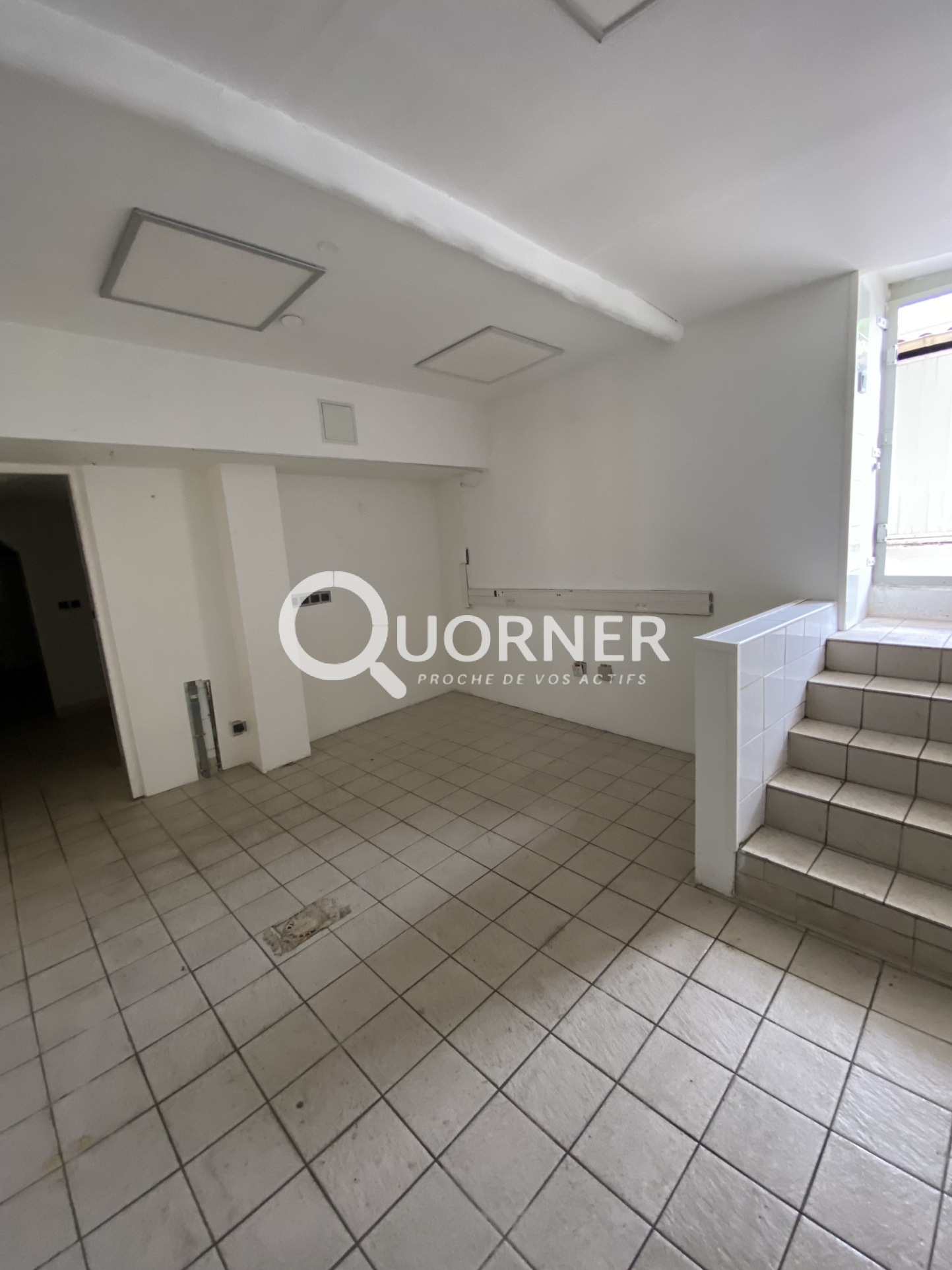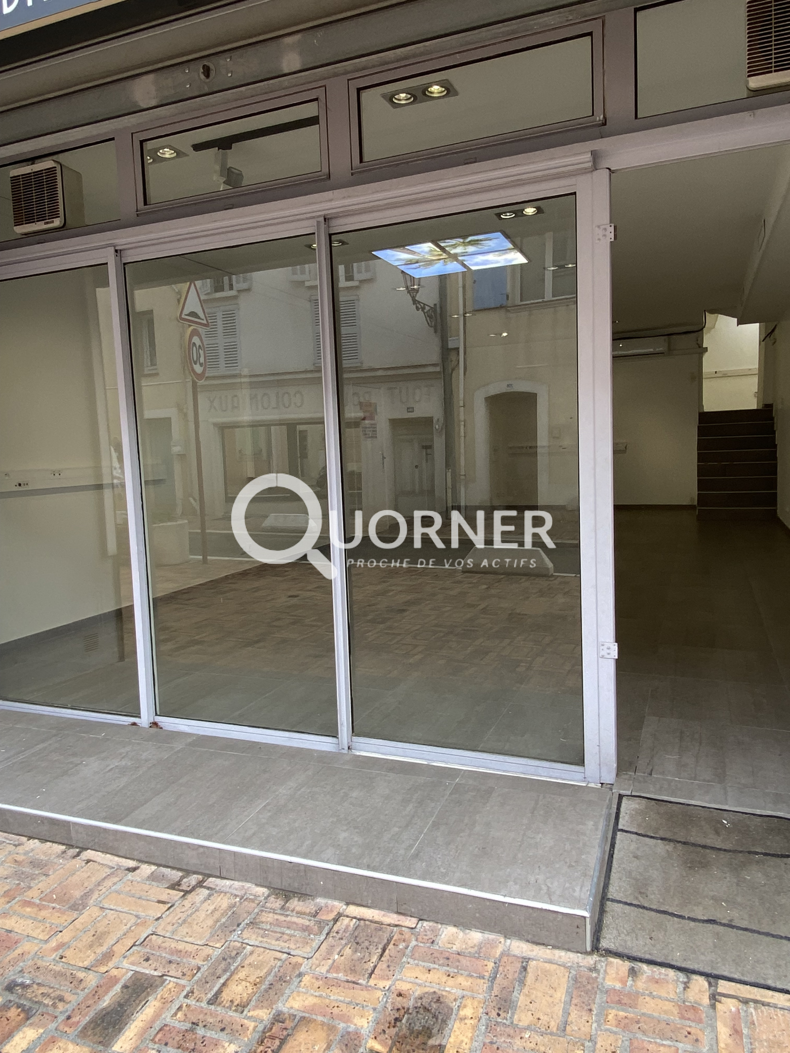 Vitrine - Climatisation - Sanitaire - A demi niveau: 2 pieces; bureau / stockage / reserve ...