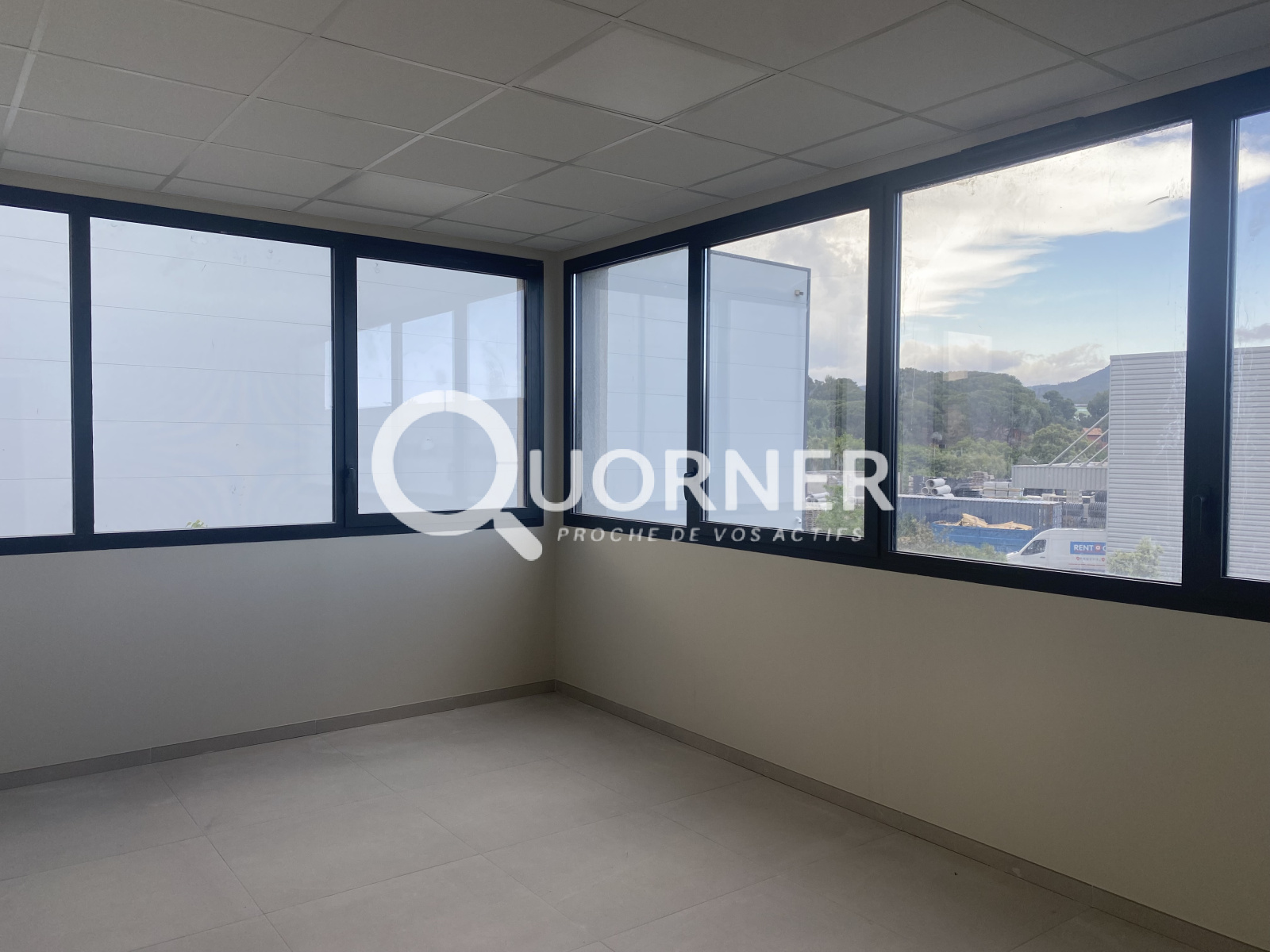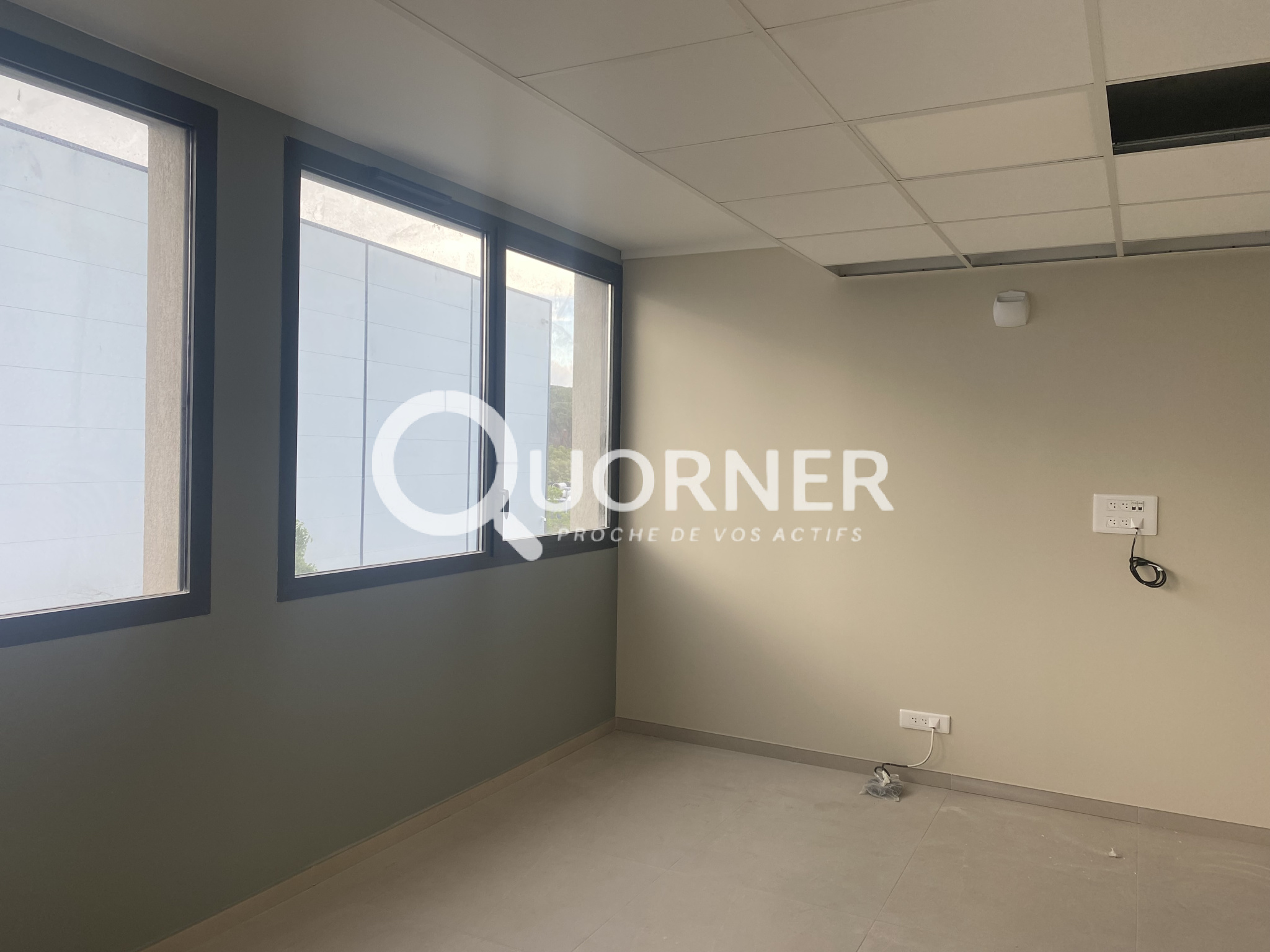 Plateau de bureaux neufs, aménagés, climatisés, avec terrasse et ascenseur. Surface totale de 345m2 dont 72 m2 détachables.